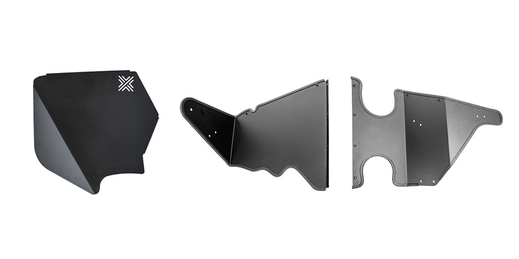 The Pipercross heatshield were painstakingly designed to maximise the shielded volume within the Ranger Raptors engine bay, thus maximising the performance of the Pipercross air filters. The heatshield is tailored to the upper and lower OE fresh-air ducting, shaping airflow from the OE feeds connected to the forward heat exchanger cavity. In addition to utilising the lower ducting, the Pipercross part fully shields the filters from ambient engine heat, with centre-facing dividing walls that run tight to the vehicle frame and arch. The Pipercross component is CNC laser cut from corrosion-resistant 2mm aluminium sheet and powder coated for additional corrosion resistance/aesthetic appeal. To improve protection further, a lid to fully encapsulate the filters was added. Designed to sit snuggly around the heatshield and body work and enclose the OE upper cold air inlet section. The heatshield makes use of the OE vibration-damping chassis mounts, while also adding several fixed mounting points (via additional bolt-on brackets) for stability and long-term kit durability. To further assure the long-term durability of the Pipercross part, hybrid EPDM edging trim is used to isolate the heatshields from direct contact with any other components to prevent any vibration-related part failures.