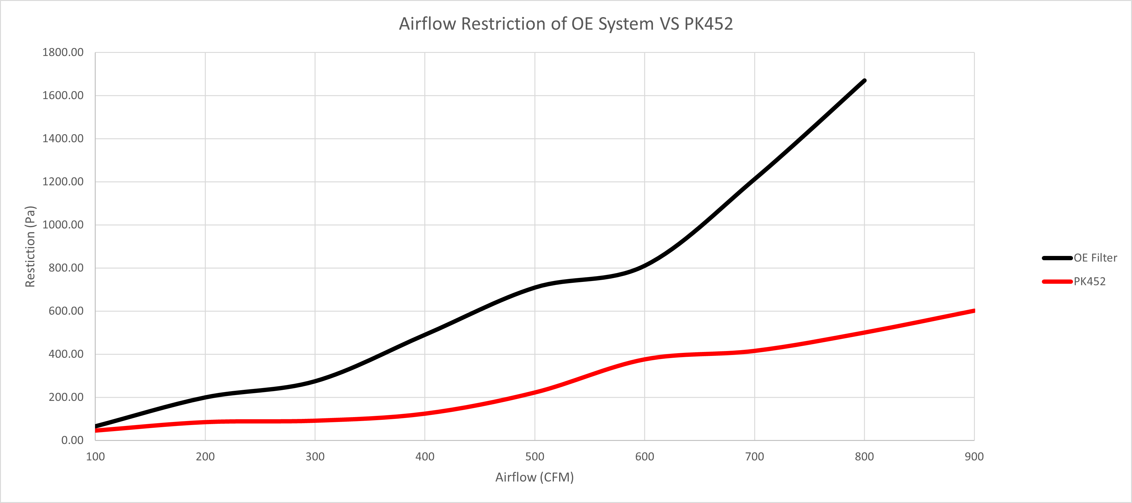 *Graphs depict the airflow based in restriction, the lower the line the less restriction.